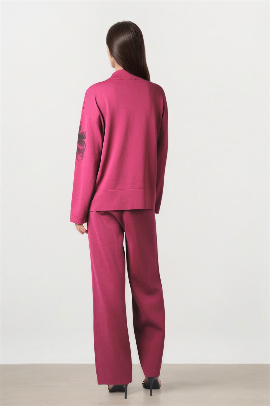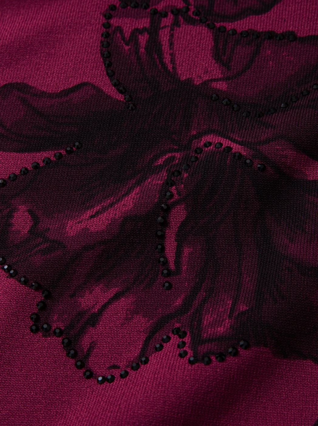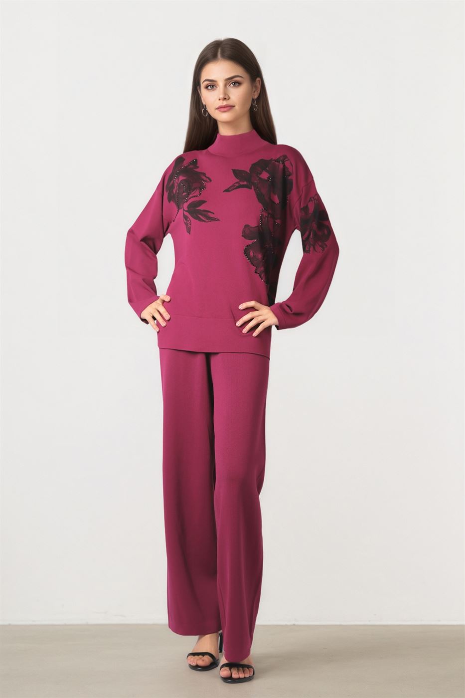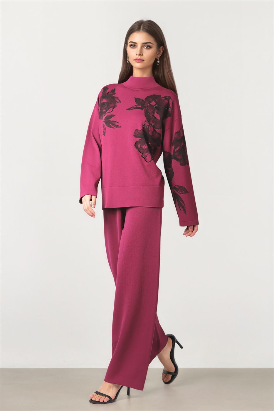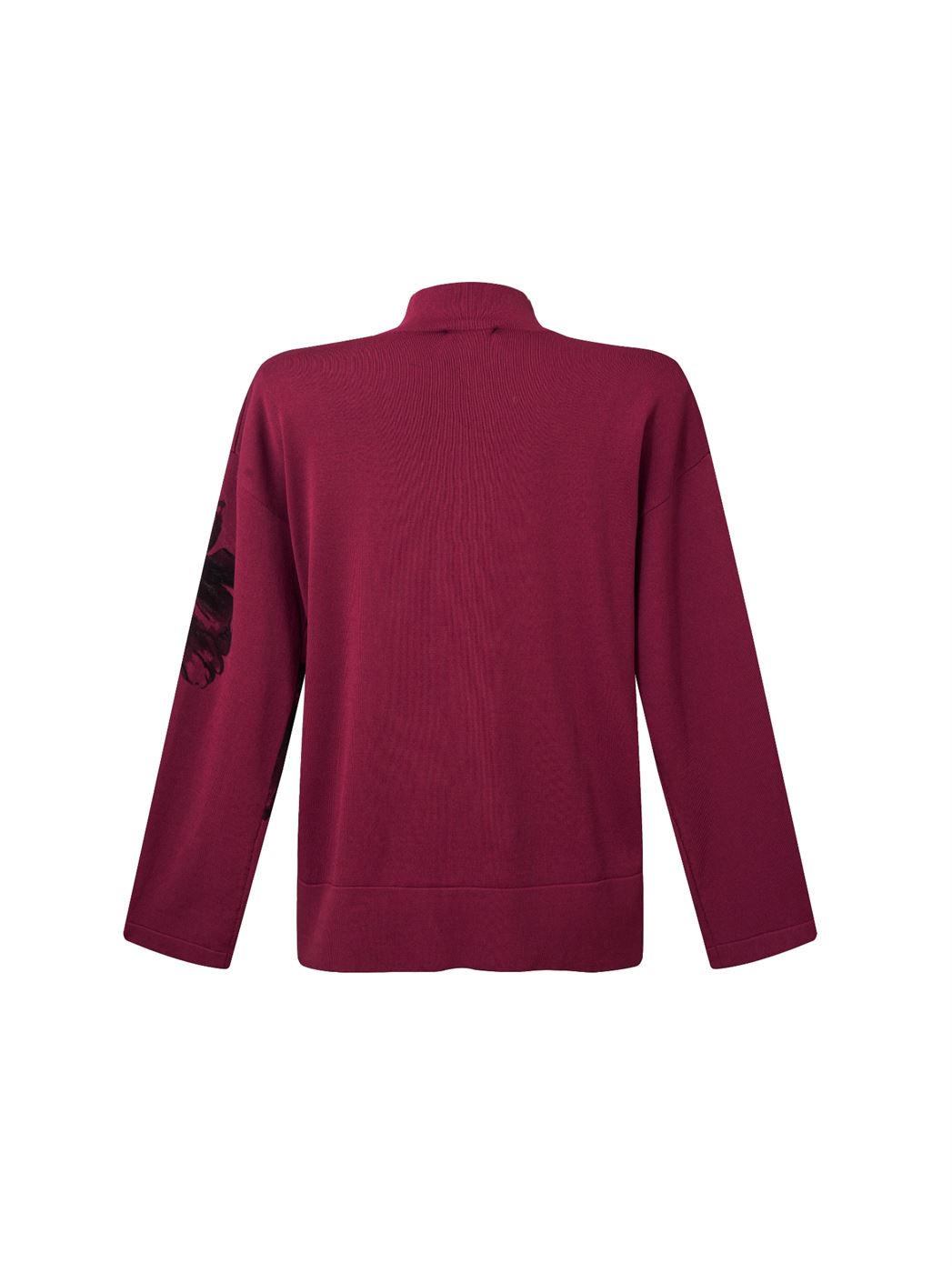 Description: Stylish and cozy, this burgundy and black knit pullover is designed with a standing collar and long sleeves. The front floral print adds a feminine touch, while the loose fit ensures comfort. Ideal for pairing with trousers or skirts for chic everyday wear.