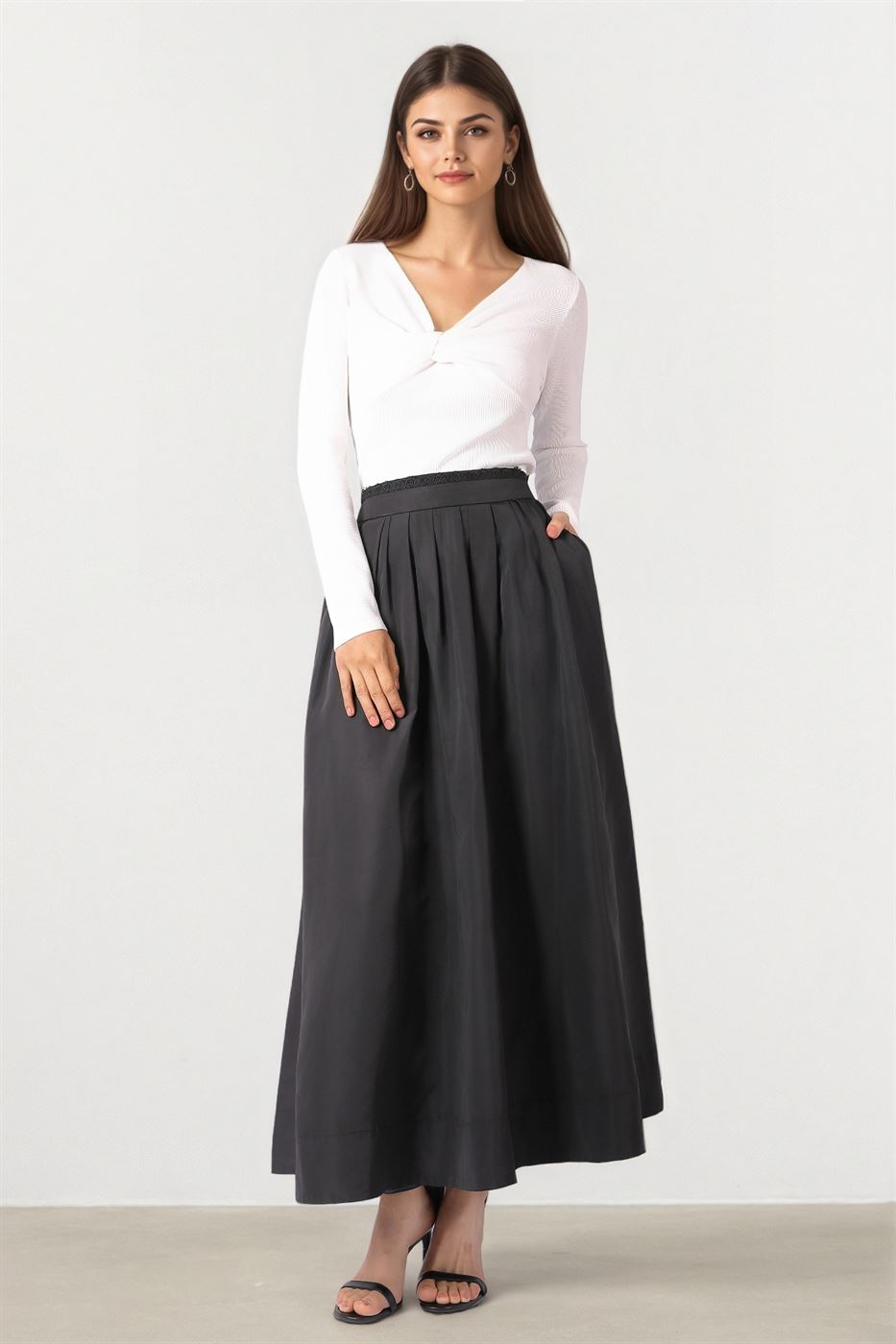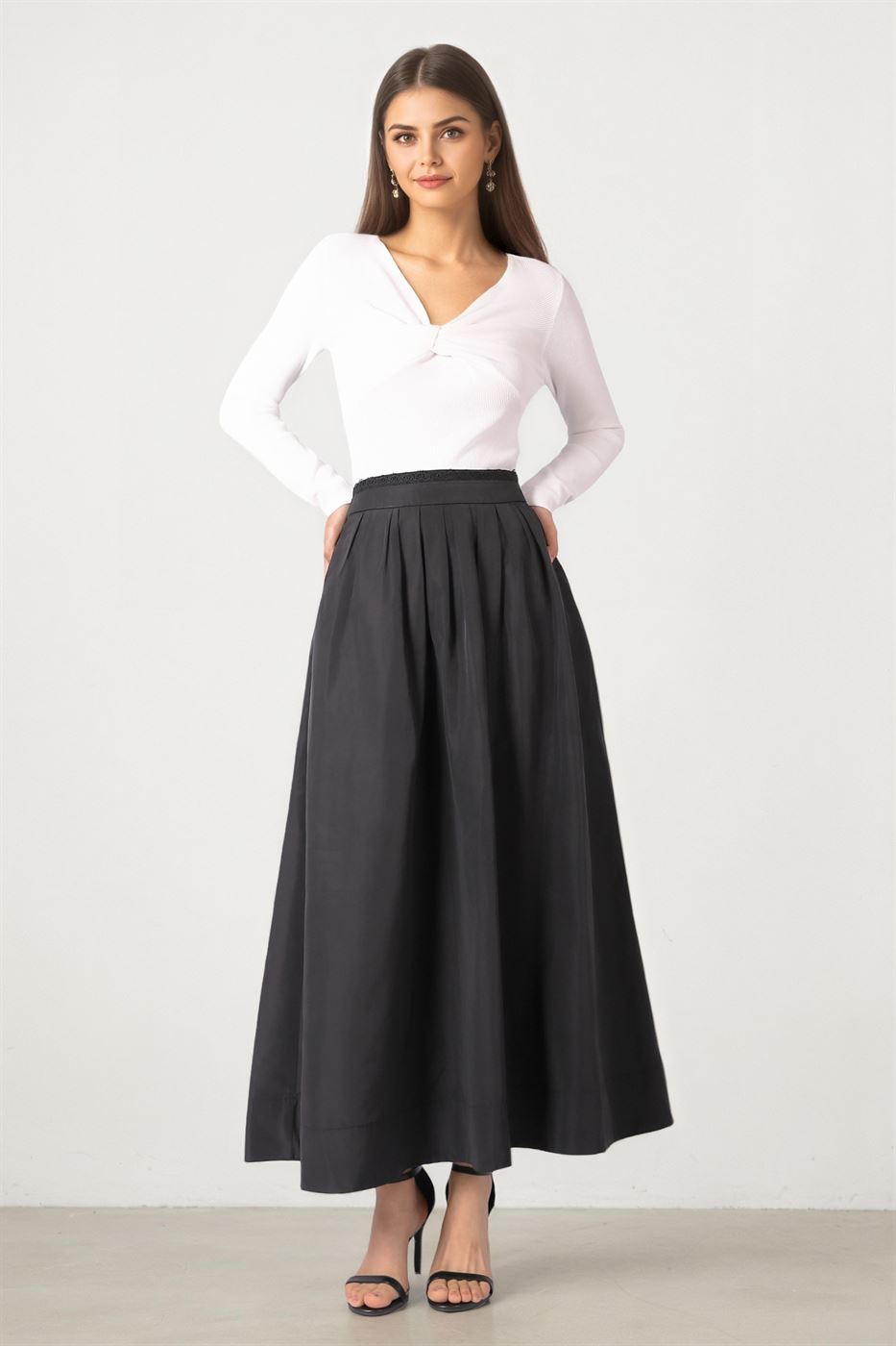 Description: Timeless and refined, this off-white knit pullover is styled with a twist knot neckline for unique detailing. The fitted bodice with long sleeves creates a flattering and versatile piece, ideal for day-to-evening wear.